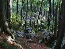 Der gesamte Bereich ist von einem sehr alten Buchenwald bestanden. Zum Teil liegen die Bäume umgestürzt kreuz und quer über den Felsen. Viele seltene Tier- und Pflanzenarten besiedeln den Wald, das Totholz und die kühlen und feuchten Felsspalten.